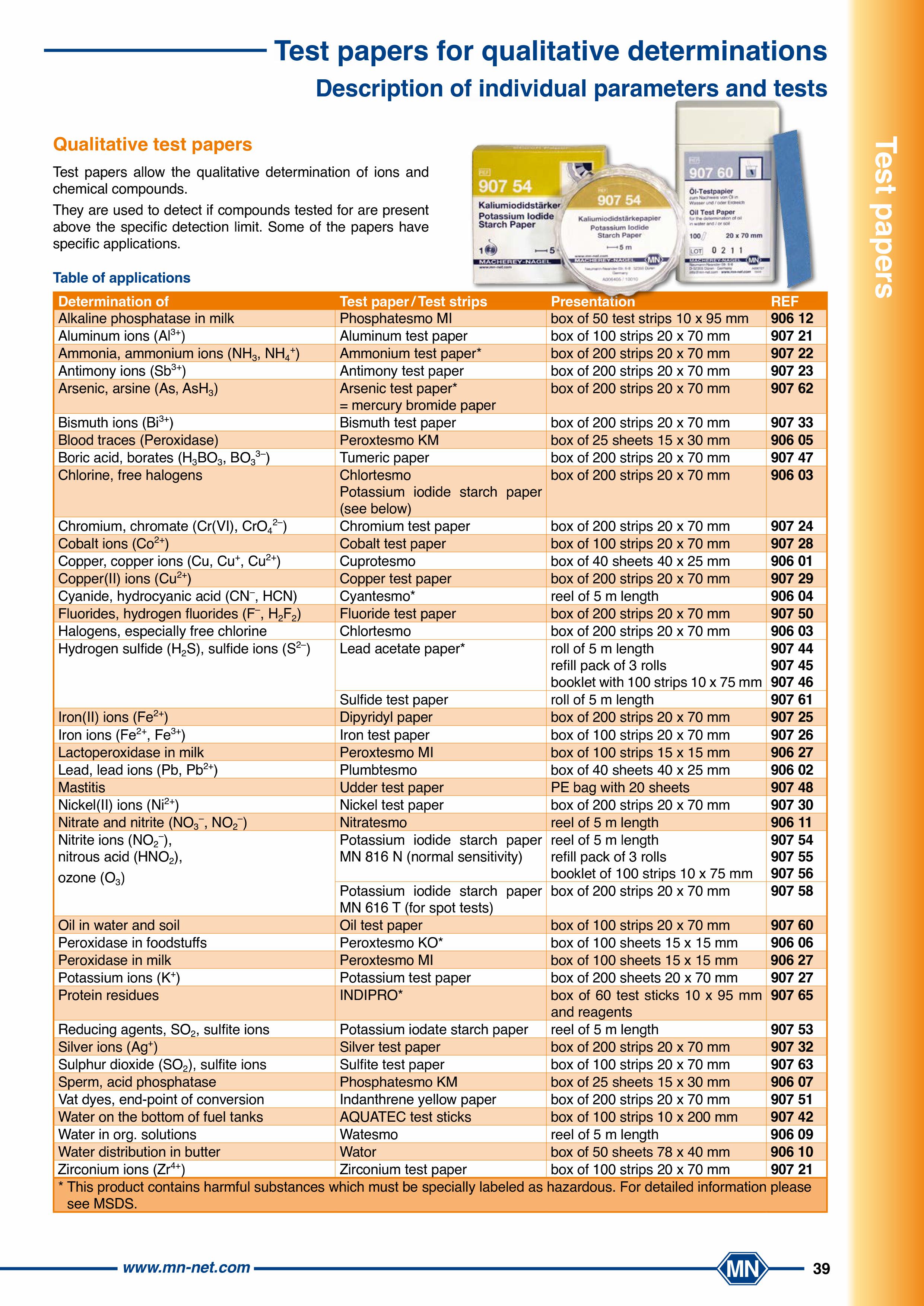 | Nickel test paper | Nickel(II) ions | 90730 |